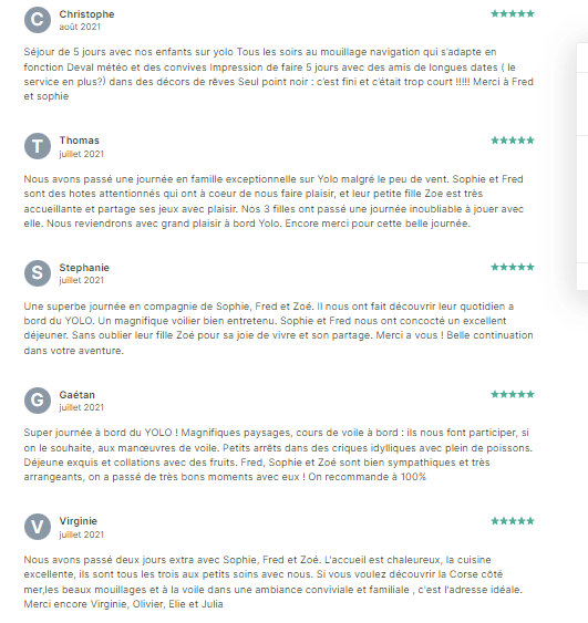 Nous organisons, aussi bien des sorties à la journée, que des séjours, afin de vous faire partager les joies de la vie en mer, le long des côtes Corses ou Sardes (selon la période). Nous avons à disponibilité une cabine double (pour un couple), ainsi que 2 couchages dans le carré (plutôt prévu pour 2 jeunes enfants), les sanitaires sont communs et la douche (chaude) est sur le pont!